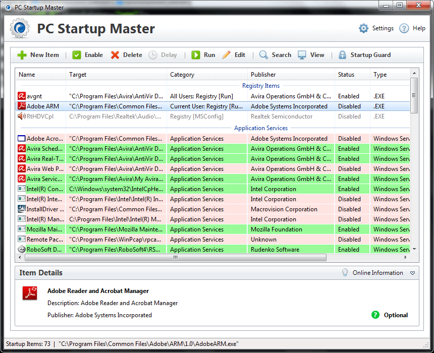 Startup Master can view and manage all services and scheduled tasks types including system and applications services and tasks. You will have the control to allow which services and tasks to be viewed and managed by Startup Master.
