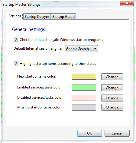 Startup items highlighting allows startup items to be easily identified according to their status with options to change individual highlighting colors.